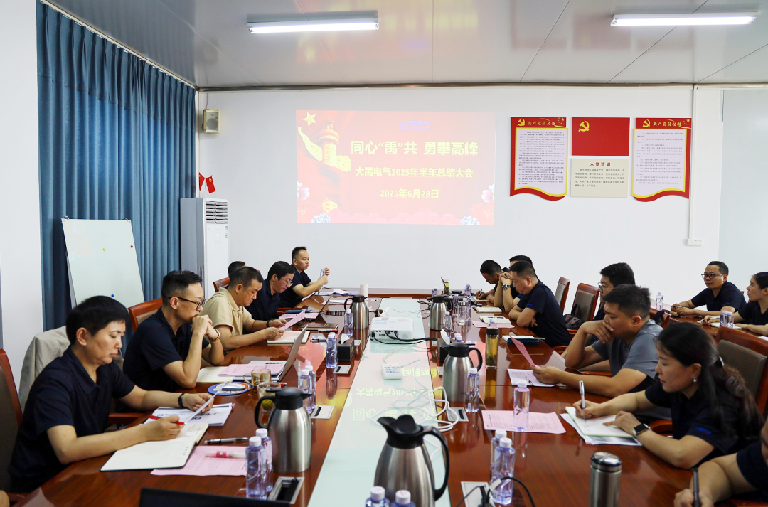 2025年6月28-29日,大禹電氣科技股份有限公司半年工作總結(jié)會(huì),在公司3號(hào)會(huì)議室隆重召開。此次會(huì)議立足宏觀經(jīng)濟(jì)復(fù)蘇乏力、行業(yè)競(jìng)爭(zhēng)格局深刻變革的大背景,全面復(fù)盤上半年工作,精準(zhǔn)錨定下半年發(fā)展方向,為企業(yè)高質(zhì)量發(fā)展擘畫藍(lán)圖。